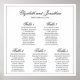 This seating chart will help your guests find their tables at your wedding reception. The simple black and white design features lacy script for the names of the couple as well as the table numbers. Perfect for adding a touch of class.