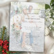 This lovely winter botanical semi-opaque vellum invitation features bouquets of ivory roses and flowers, red holly berries, fir and golden snowflakes surrounding an elegant gold label for your monogram on a pale pearl grey background. Includes editable text fields.
