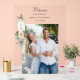This lovely winter botanical welcome poster features bouquets of ivory roses and flowers, red holly berries, fir and golden snowflakes surrounding an elegant gold label for your monogram on a pale pearl grey background. Includes editable text fields and photo template.