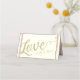 Gold and pink stripe and golden script word "love" decorate this elegant ivory seating tent card. Simply elegant way to seat your guests, for any wedding or special occasion.