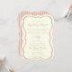 Gold and pink ribbon scallop design over an ivory background, a simply beautiful and elegant wedding invitation with typography inspired text and complimentary striped back.