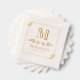 Monogrammed cocktail napkins with an elegant greenery frame and greenery divider stamped in gold foil. Wow your guests at your next dinner party or cocktail party with these personalised gold foil napkins.