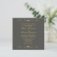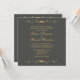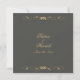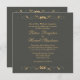Golden scroll accents front and back with matching text. Gravel (green grey) and this solid simple look is fantastic for an evening or winter wedding. Put the first names of the Bride and Groom along with the wedding date on one side giving your invitations a less formal feel. On the other side the pertinent wedding information adds a classic flair. Hex code #4A4B46