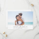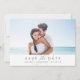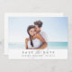 Invite friends and family to save your date with our simple, clean and chic photo save the date cards. Flat cards feature your favourite horizontal orientation engagement photo with a white band at the bottom, displaying "save the date" and your names and wedding date in a chic mix of modern block and calligraphy typefaces. Add additional details to the back, including your full names, wedding location, website, and an indication that a formal invitation will follow.