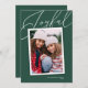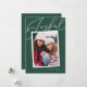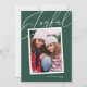 This modern yet elegant holiday photo card features a beautiful dark green background with "Joyful" in white calligraphy script and one photo. This design accommodates a single vertical photo on the front of the card. On the reverse side is the same green background, to which you can add another photo and/or additional text by selecting the "edit using design tool" option.