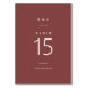 Simply Elegant Modern Burgundy wine Wedding Table Number