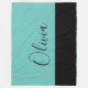 Simple, yet elegant...this pretty teal background is trimmed in black...and personalised with your name in pretty script. Perfect for snuggling. You can personalise with your name, your family's name or your pet's name. Text style, size, and colour, can be changed; if preferred, using the edit menu. Pairs with matching pillow.