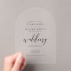 Beautiful in it's simplicity, the pieces in this wedding suite feature modern, hand-written script accents and a classic black and white colour palette that can easily be changed to suit your preferences. The bride and groom's initials and wedding date on the reverse of this arch-shaped acrylic invitation, and all the invitation wording can be customised using the provided template. Search ID523 to see all the pieces in this elegant set.
