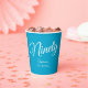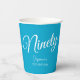 Simply Modern Script Aqua Blue 90th Birthday Party Paper Cups