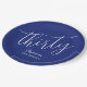 Simply Modern Script Navy Blue 30th Birthday Party Paper Plate