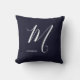 Simply Monogrammed Script Letter M Navy Blue Cushion