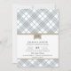Simply Plaid Blue & Tan with Monogram Wedding Invitation