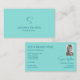 Simply Plain Teal with Monogram and Photo Modern Business Card
