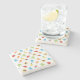 The coasters are gorgeous, a quality feel and heavy weight. They look like a precious archeological find. A rustic stone juxtaposed with a modern floral black and white print. I like the way the print goes slightly imperfect on the cut stone edges giving them a kind-of natural beauty.