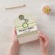 This all-in-one invitation with removable RSVP card features a background of stripes in soft yellow, blue, and pink. Layered on top of this pattern are panels of cream with a green-edged ribbon to provide a base for sample text on the interior that can be customised for your event and blank space on the exterior that can be used for addressing the cards to the recipient and the returnable section with the appropriate return address. Finally a sweet and colourful rattle, decorated with circus-inspired pink and green dotted segments and blue and orange latticework on the main body, yellow polka dots on the purple handle, and brightly coloured segments like stained glass on the flower shaped grip, sits on the flaps with a sample initial inside a green bordered flower to add a final custom touch. Be sure to check out the full Simply Sweet Rattle collection for more great gifts and products for a baby shower or the little one in your life.