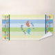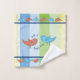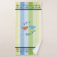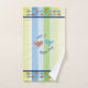 Fun and colourful custom towel set with colourful strips and decorative birds, with wording "Sing a happy song" You can customise the wording, font and font colour at time of ordering. Towel design is printed on the front side only, back of towel is white