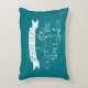 "Some days there won't be a song in your heart. Sing anyway." -Emory Austin Teal throw pillow with white typography, compact Minor Setback logo on back corner.