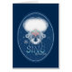 Sing for joy when hitting the high notes of praise. Elegant woman with glowing white hair on dark blue background and flowers.