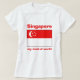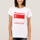 On the front of this shirt an editable title and slogan accompanies the Singaporean flag with its white crescent and star in a red band above a white band. The back displays a detailed map of Singapore.