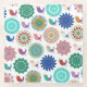 Colourful, whimsical folk art pattern with singing birds and mandalas.