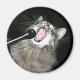 It's karaoke night at the local alley and this grey tabby cat grabs the microphone and caterwauls away for his supper photo fridge magnet
