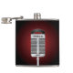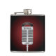 This design is a singing microphone. The microphone is on a stand ready for someone to sing into it. This singing microphone design looks great on this Flask