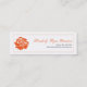 A single blossom in bright orange calls attention to this skinny business card. A great way to introduce yourself and easy to carry around. Add whatever contact information you please. Available in alternate colours with matching products.