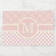 Your single custom monogram initial highlights these white polka dot on pink and yellow rose on pink split design sparkling wine labels.