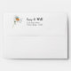 Envelopes to coordinate with your Daisies and Denim wedding invitations and suite. A single hand-drawn watercolor white daisy decorates the envelope front and back flap where your return address is printed. Black fonts on white paper create a classic look for your casual rustic, country or western-themed romantic event.