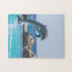 A beautiful dolphin jumping on this wonderful scenic puzzle.