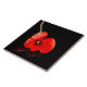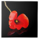 Single red poppy on black ceramic tile