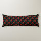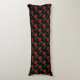 This elegant floral body pillow features a repeating pattern of a single red rose with green leaves set on a pure black background. The perfect gift for gardeners!