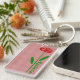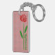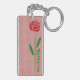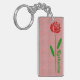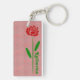 Single Red Rose Green Stem Leaves Customise Name Key Ring