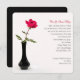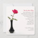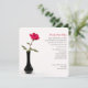 Single red rose in black vase on white background for anniversary dinner invitation.