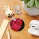 A bright red rose dresses up this personalised key chain. The rose image and the easily customised text in silver grey is placed on a dramatic black background.