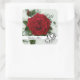 Beautiful single red rose square sticker with an artistic heart design and the words "Thinking of You" - perfect for cards, envelopes, gifts, and more!