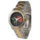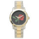 This lovely watch features a single red rose with green leaves set on a pure black background.