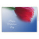 Single red tulip flower in blue background. Gifts for Valentine's day, love, wedding, etc.