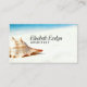 This film-style image features a single textured conch shell resting on pristine white beach sand, positioned to the left of the frame. The soft focus background reveals a gradient of vivid blue ocean meeting a clear azure sky, with the expansive sand dominating most of the scene, evoking a calm, nostalgic coastal atmosphere.