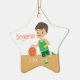 Personalise this cute basketball ornament for the sport-loving boy in your life! This ornament features a brunette boy dribbling a basketball on a basketball court. Also available in other colours for extra customisation.