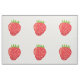 Strawberry cotton fabric. Have some creative fun with this strawberry material. A cute red strawberry illustration makes a pattern in a way that the swatch contains a single strawberry, a fat quarter has 6 and a yard 24. The isolated image makes it great to use in various sewing or quilting projects, for example applique, fabric collages or making toys.