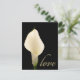 Single white wedding calla lily against a dramatic black background with love in gold script font. Simple - elegant.