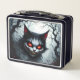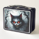 Our metal lunch box is perfect for those in love with the classic style. Featuring a haunting design of a sinister cat with glowing red eyes and a wicked grin, this lunch box adds a bold, spooky twist to any lunchtime. Whether you're packing a meal or showing off your love for the eerie and unusual, it's sure to make a statement. Customise the front and back with your own images, text, or designs for a fabulously fun (or frightening) lunch time for your kids or yourself!