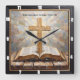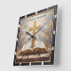 This profound wall clock depicts a sturdy wooden cross rising above an open Bible, resting on a textured wooden surface, all bathed in a radiant burst of light. The powerful scripture, "He bore our sins on the cross. 1 Peter 2:24," is prominently displayed. With its rich, painterly texture, this timepiece serves as a constant, solemn yet hopeful reminder of Christ's sacrifice and the redemption found through His suffering.