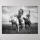 Old photo of Sioux chiefs on horseback wearing headdresses. Native American portrait photo taken in 1905 by Edward S.Curtis.
