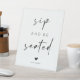 Set a welcoming tone with this Sip and Be Seated sign, perfect for inviting guests to enjoy a drink and find their table at weddings, bridal showers, or special celebrations. Stylish and easy to personalize to match your event decor. Customizable colors.
