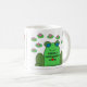 Adorable bright green pop art frog surrounded by pink lily pads on a gleaming white background. On the other side are writing lines "note pad". Busy Mum can jot down the day's list right on the coffee cup with an erasable marker. Make the list while sipping the AM coffee!