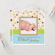 Trendy and playful, this sip and see invitation in fun dots of blue, green, and brown frames your sweet baby boy's photo on the front with all the party details on the back.