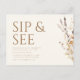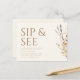 This beautiful fall invitation showcases the phrase "Sip and See" in large, elegant script across the top, setting a welcoming and festive tone. Below, you'll find space for all the essential party details, such as date, time, and location, ensuring guests have all the information they need. On the right side, soft watercolor fall leaves and flowers add a touch of autumnal charm and warmth. This thoughtfully designed invitation captures the spirit of togetherness and gratitude, making it the perfect choice for inviting loved ones to meet your new baby.