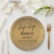 Sip Sip Hooray elegant gold confetti celebration retirement party plates. Congratulations on your retirement. Custom name and dates. Great for any retirement party with classic design.